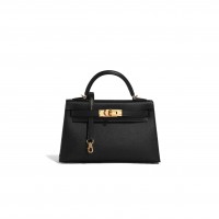 HERMÈS MASTER KELLY SELLIER 20 BLACK CHEVRE CHAMKILA PALLADIUM HARDWARE 2963547 (20*11*6cm)