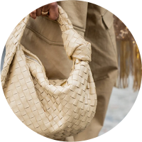 Small Intrecciato foggy mirror leather top handle bag with sliding cross-body strapCompartmented interior with one zipped pocket, one open pocketMagnetic closureLining: Lambskin bonded IntrecciatoColor: GoldHardware: Brass finishProduct code: 766014V4P148922..